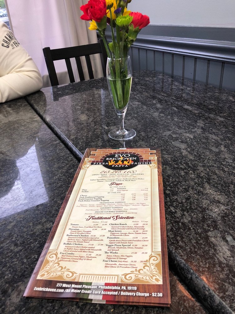 Introducing the menu at Evo Brickoven Pizza, located in Philadelphia, offers a variety of gourmet and traditional Italian pizza options. From the Gourmet Selection, the Alfredo Pizza with homemade sauce and the Antipasto Pizza with prosciutto, salami, and roasted peppers stand out. For those looking for traditional favorites, the Barbecued Chicken Pizza and Buffalo Chicken Pizza are tempting options. The Pizza by the Pie section includes a Heart Shaped Pizza and a Pizza Kit for DIY pizza making at home. Evo Brickoven Pizza also caters to various dietary needs with vegan and vegetarian options available. The casual ambiance, outdoor seating, and friendly service make it a great spot for lunch or dinner. With a wide range of payment options and amenities like Wi-Fi and TV, Evo Brickoven Pizza ensures a pleasant dining experience for all customers.